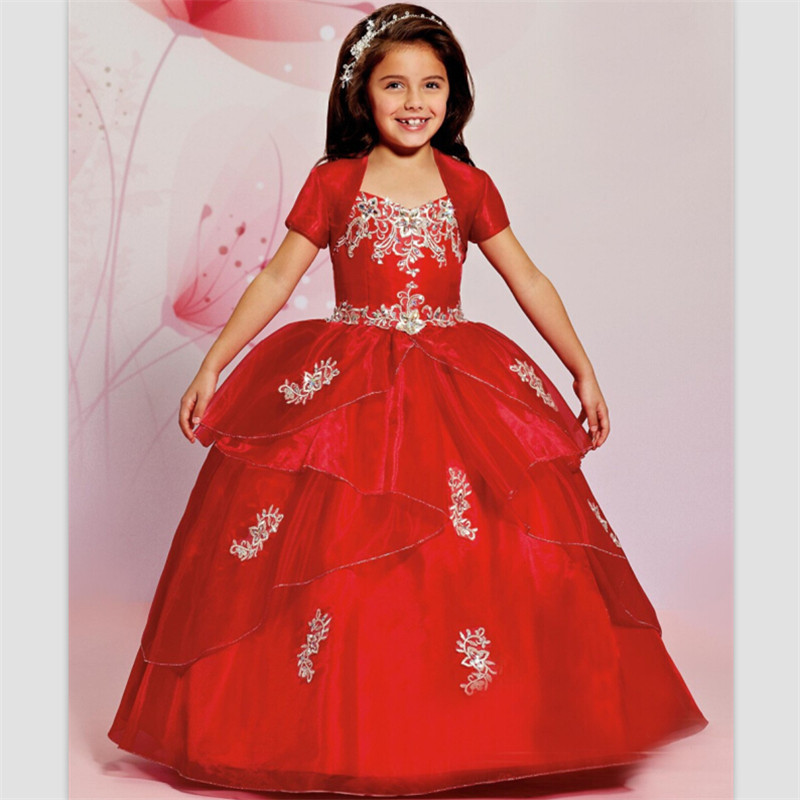 Nice красный органза театрализованное платья для маленькой девочки с курткой кружево аппликации девочки театрализованное платья бусины дети вечерние платья