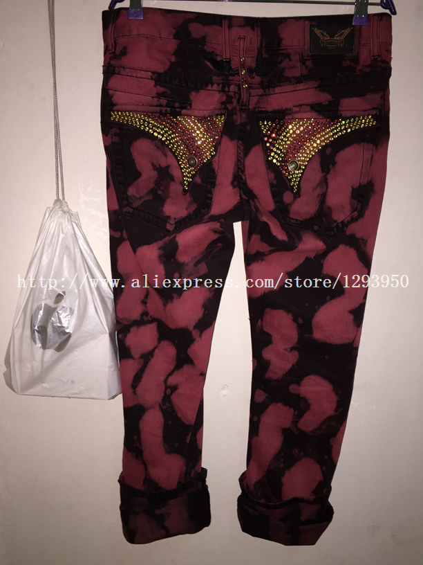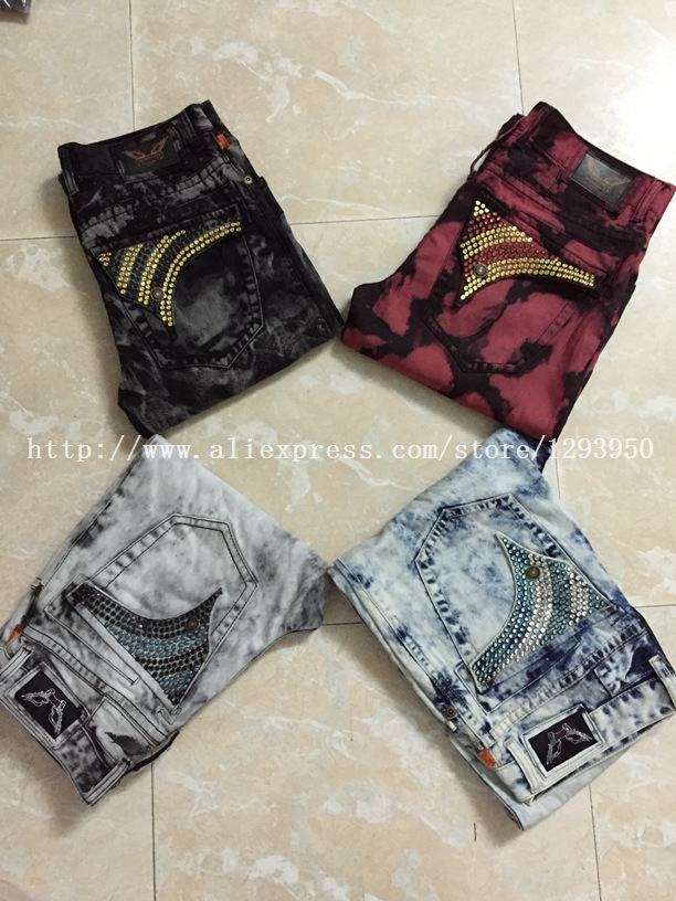 2015 новый черный и красный робин джинсы регулярные прямые брюки дизайнер известный бренд мужской белые джинсы Большой размер 30 - 42
