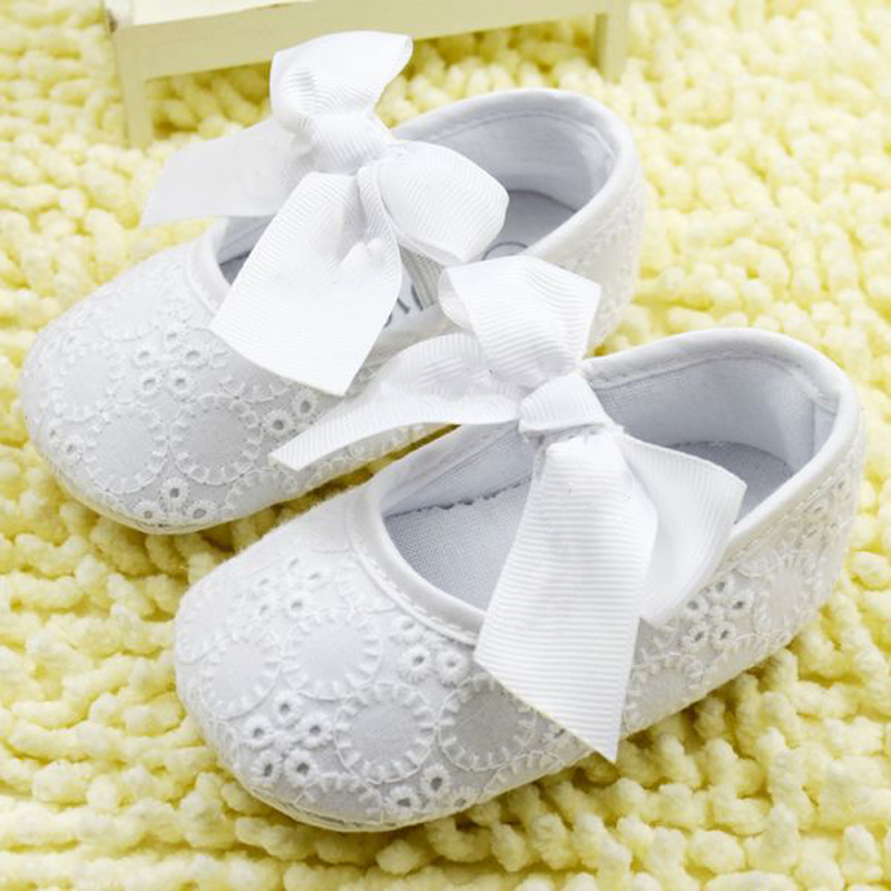 Новорожденных девочек ленты бантом мягкое дно обувь, детская хлопок белый цветок обувь