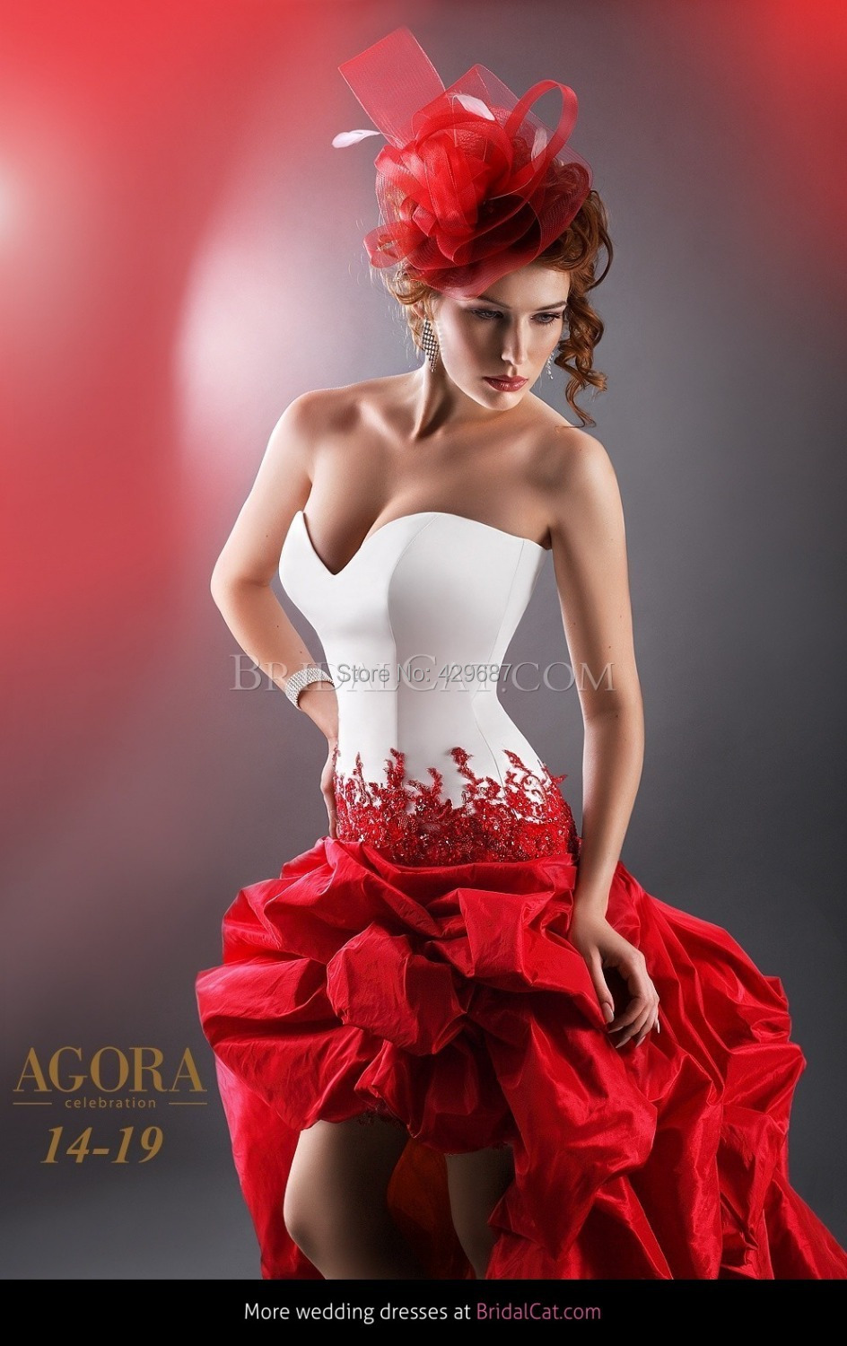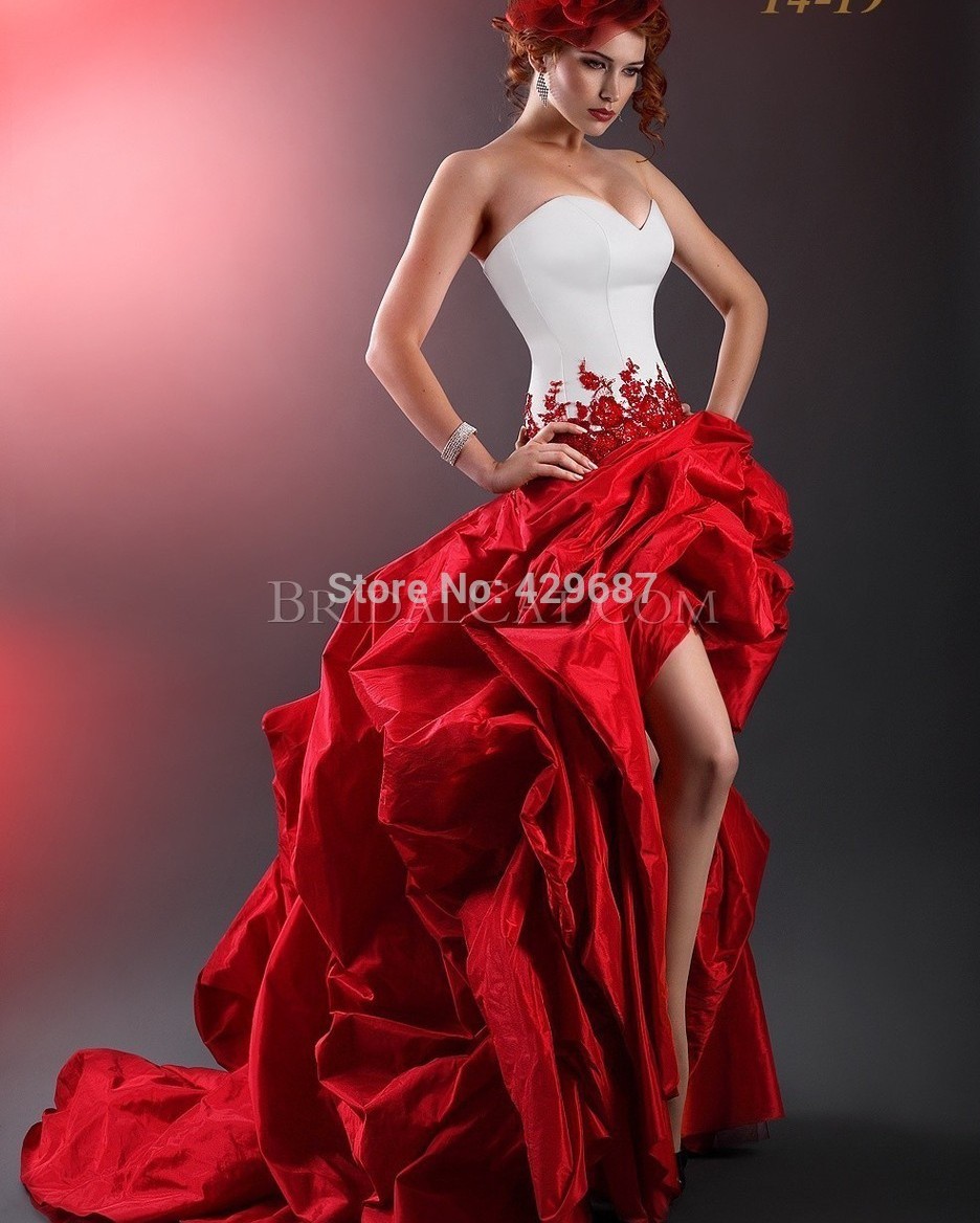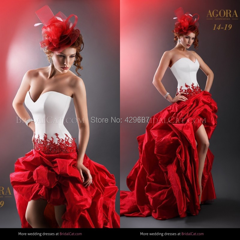 Винтаж 2015 Свадебные платья без бретелек свадебное платье линии высокий-низкий короткий передний длинная спина плюс размер белый и красный UM717