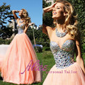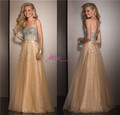Chic Crystals Champagne Open Back Two Piece Long Prom Dresses 2015 Party Dresses Sleeveless vestidos de formatura abendkleiderUSD 155.00/piece
