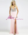 Sexy Beading V-neck Open Back Split Long Elegant Prom Dresses 2015 Gown Chiffon vestido de formatura abendkleider crystal 2014USD 145.00/piece