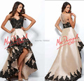 Sexy 2015 High Low Prom Dresses with Black Applique New Arrival Scoop Neck Evening Dresses Party Gowns vestidos de formaturaUSD 138.00/piece